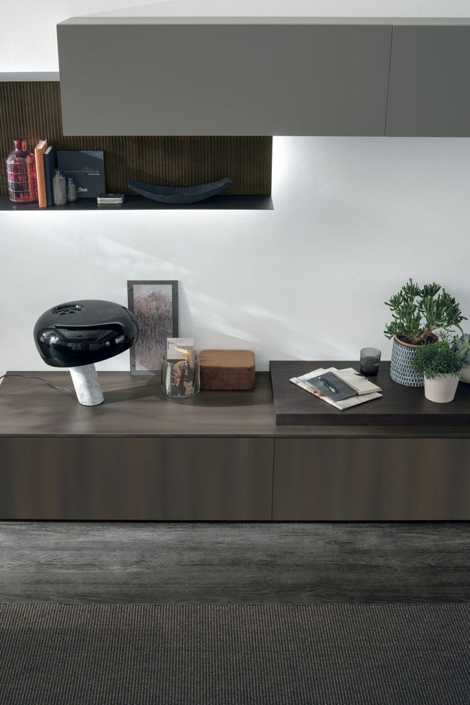 Un mix tra libreria, contenitore ed espositore, questa parete attrezzata rappresenta la perfetta sintesi tra design e funzionalità: ogni elemento è progettato per garantire ordine, praticità e continuità visiva.