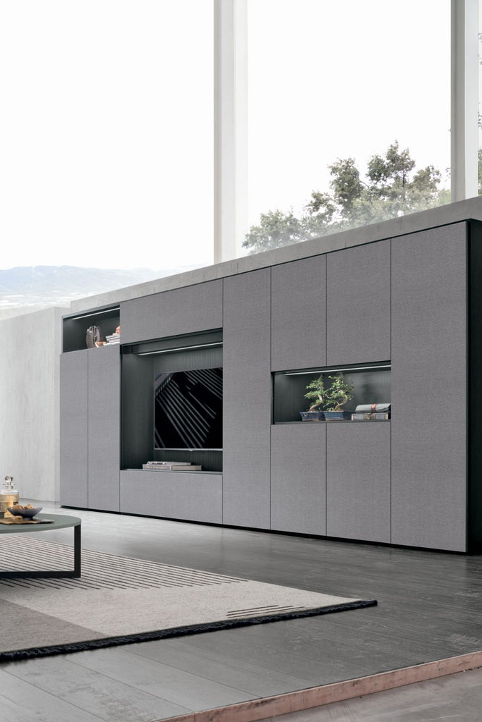 Un mix tra libreria, contenitore ed espositore, questa parete attrezzata rappresenta la perfetta sintesi tra design e funzionalità: ogni elemento è progettato per garantire ordine, praticità e continuità visiva.