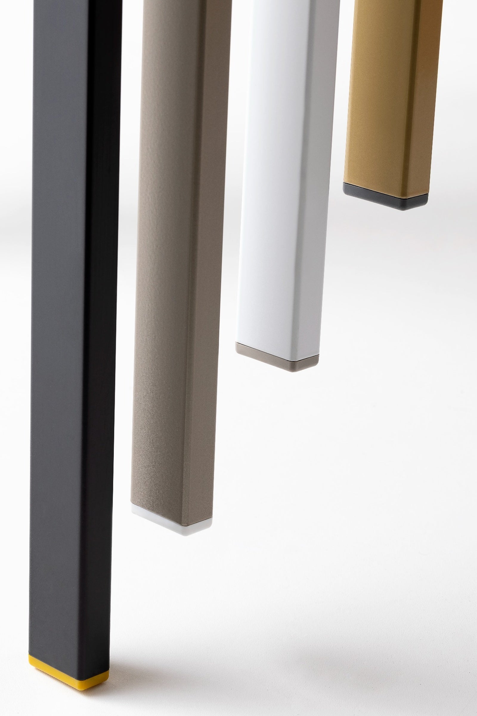 La collezione comprende anche lo sgabello nelle altezze 65 cm e 75 cm, ideale per penisole, banconi e spazi hospitality.