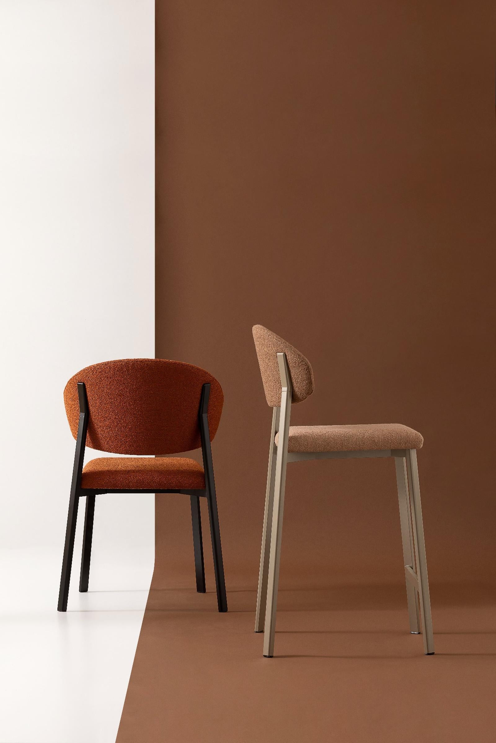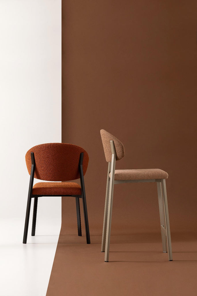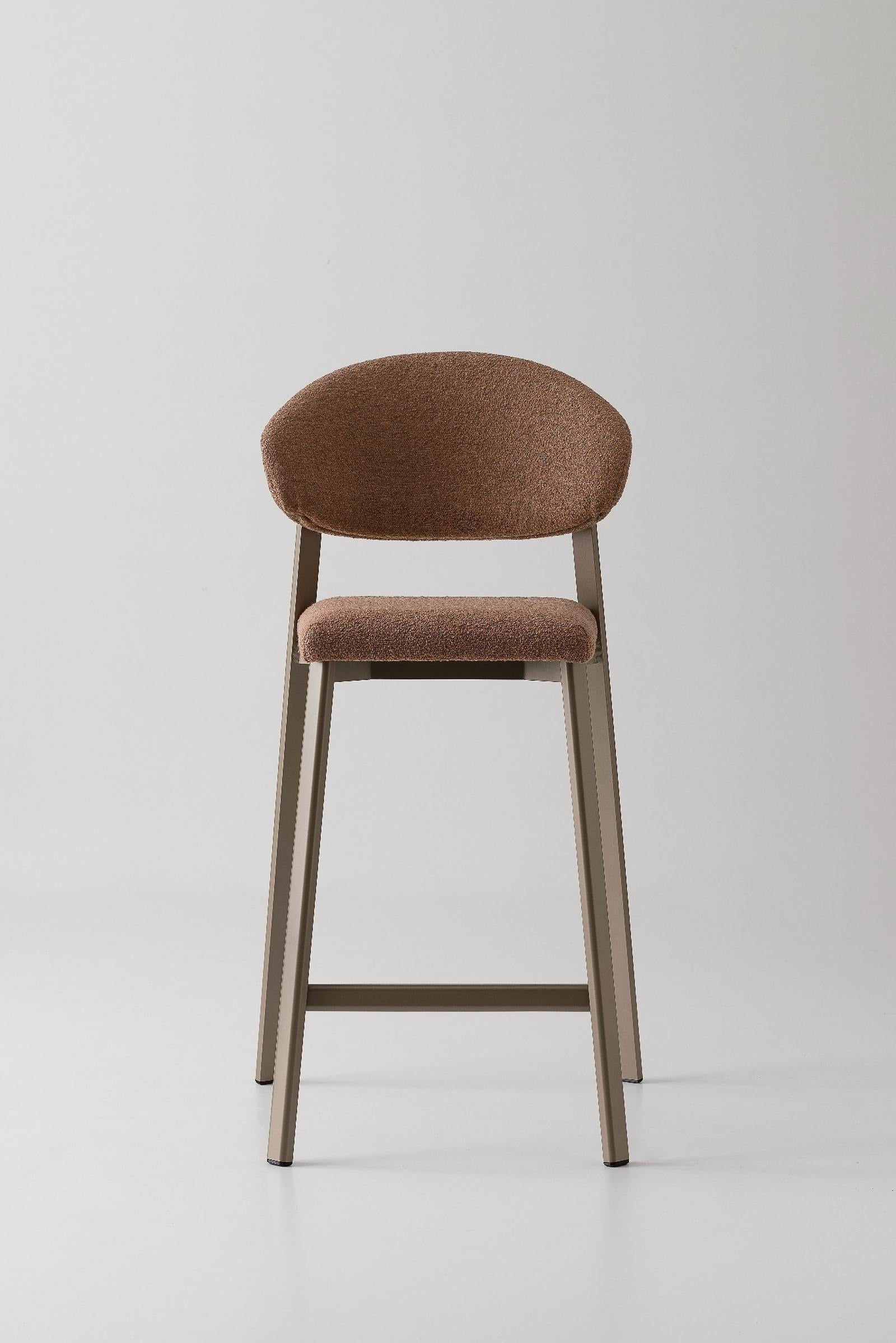 La combinazione tra la silhouette arrotondata, i volumi morbidi e le nuance ricercate conferisce allo sgabello un carattere elegante e distintivo, perfetto per cucine moderne, isole, penisole, living contemporanei, oltre che per spazi contract come lounge, bistrot e bar.