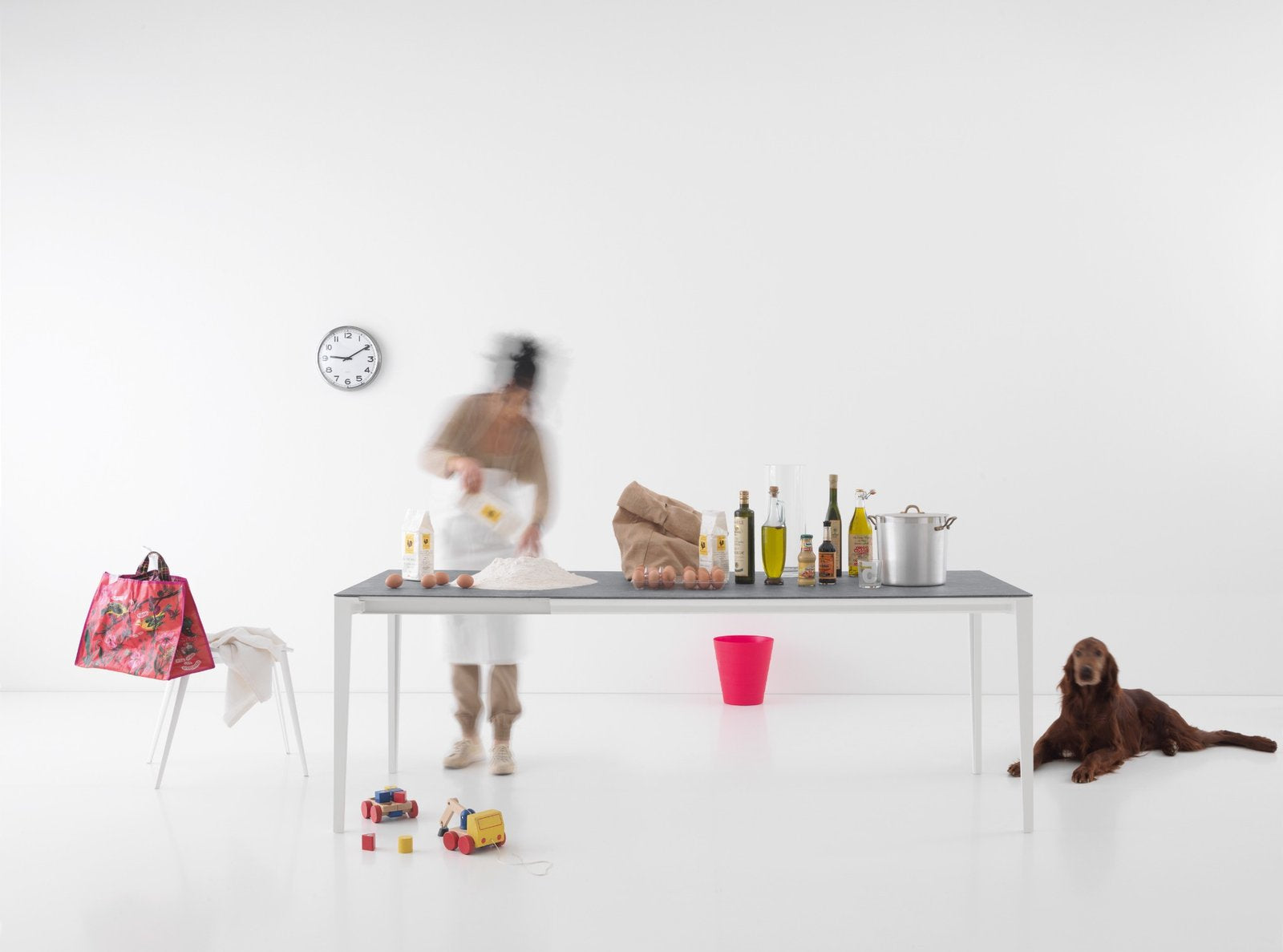 Il piano e l’allunga offrono una gamma estremamente ampia di finiture per adattarsi a ogni stile d’arredo: