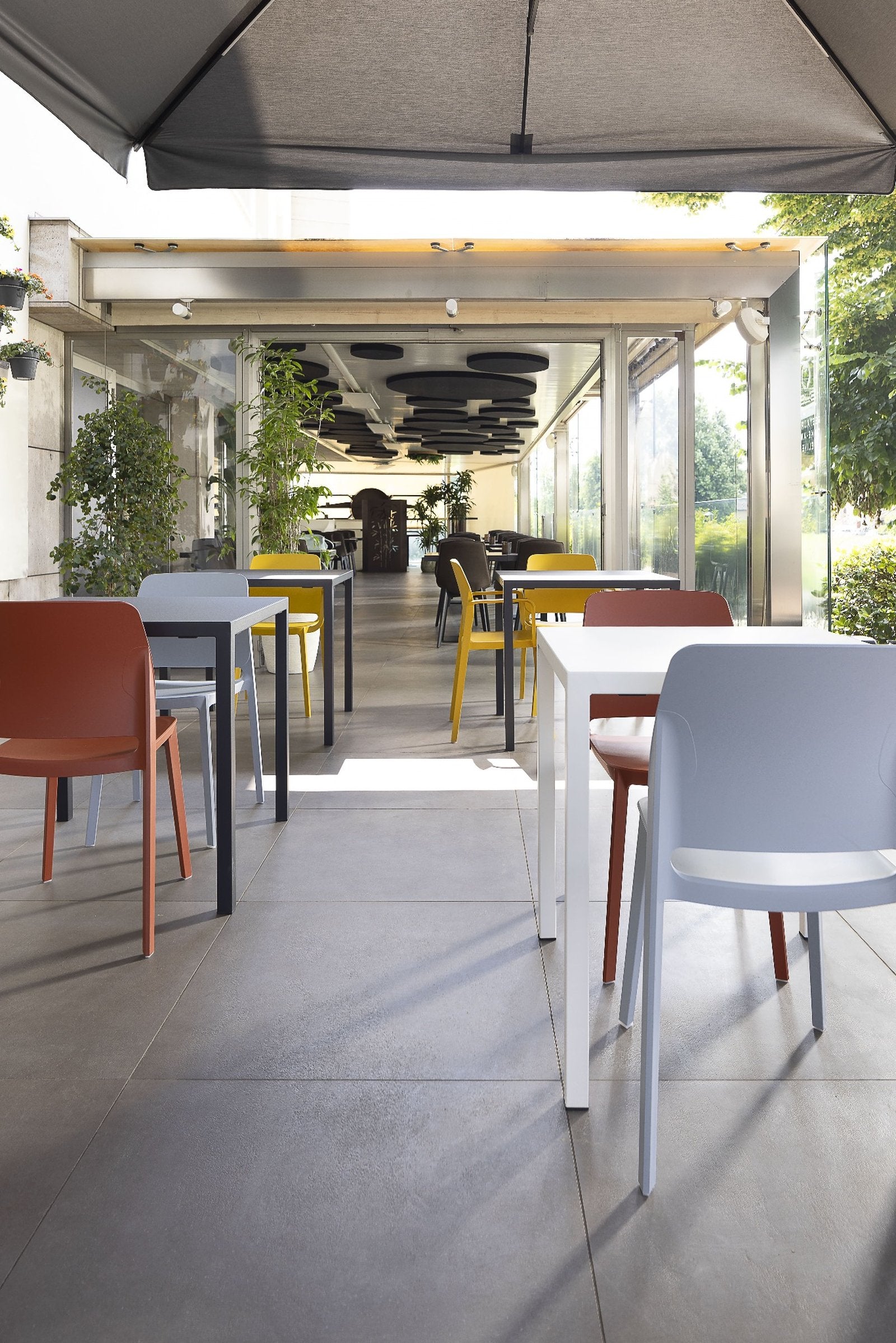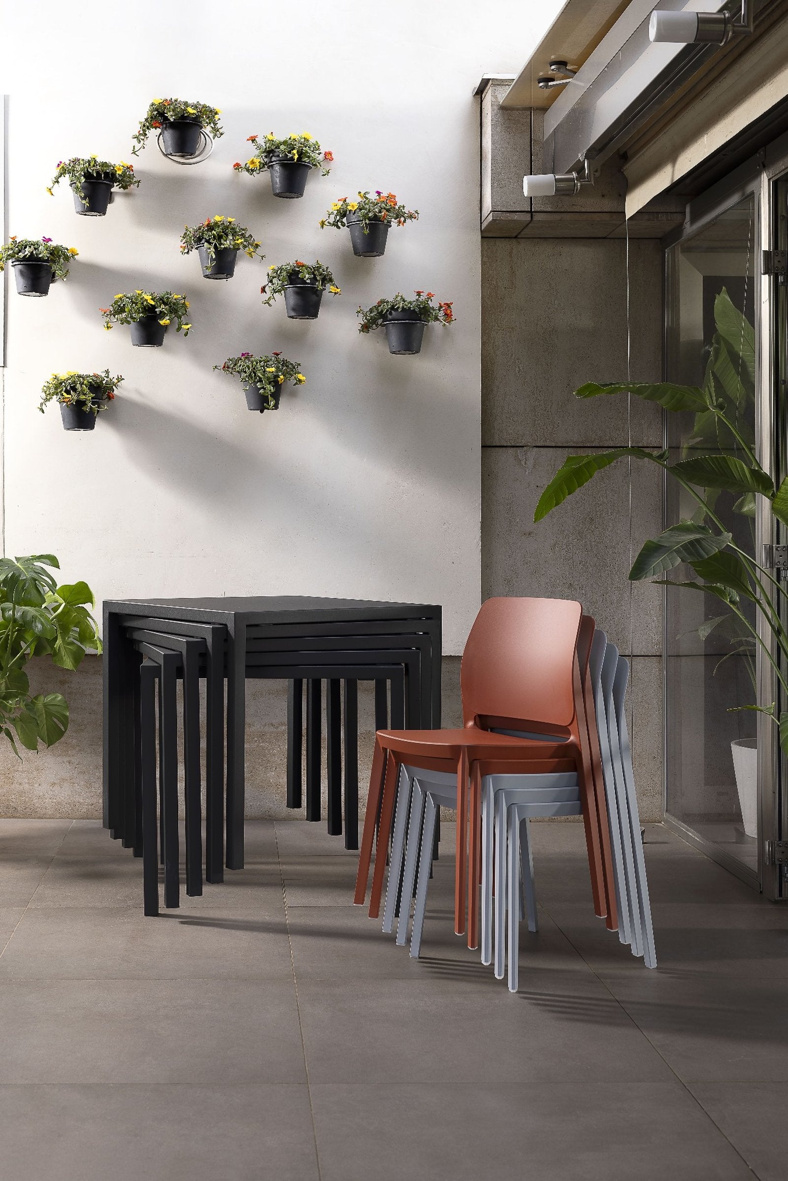 La struttura leggera ma robusta consente di impilarlo facilmente, ottimizzando lo spazio quando non utilizzato o in contesti professionali come bar, ristoranti e zone outdoor.
