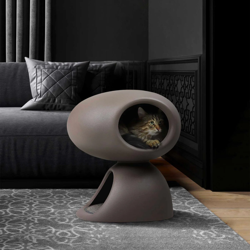 Realizzata in polietilene riciclabile, resistente e facile da pulire, Cat Cave è un oggetto di design che integra alla perfezione estetica e benessere animale, diventando un elemento decorativo unico per la casa.