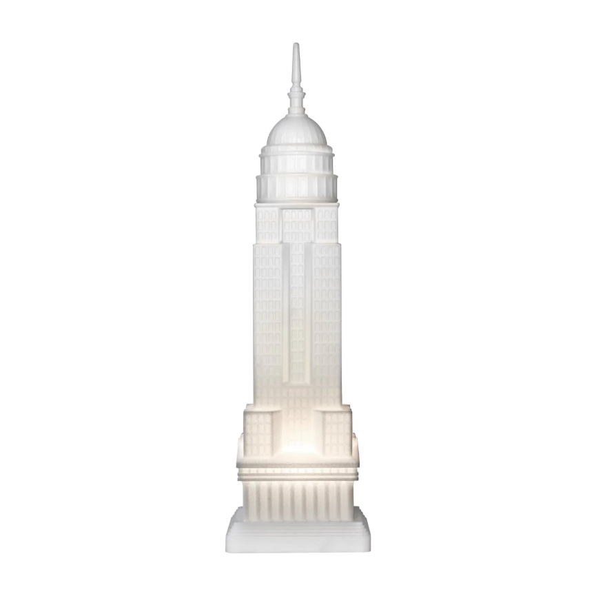 La Lampada Empire LED di Qeeboo, disegnata da Studio Job, è un’icona luminosa che fonde tre simboli dell’architettura mondiale: il Partenone alla base, l’Empire State Building al centro e il Campidoglio in cima. Un oggetto scenografico che riflette sul concetto di potere e sui riferimenti culturali racchiusi nei grandi edifici monumentali.