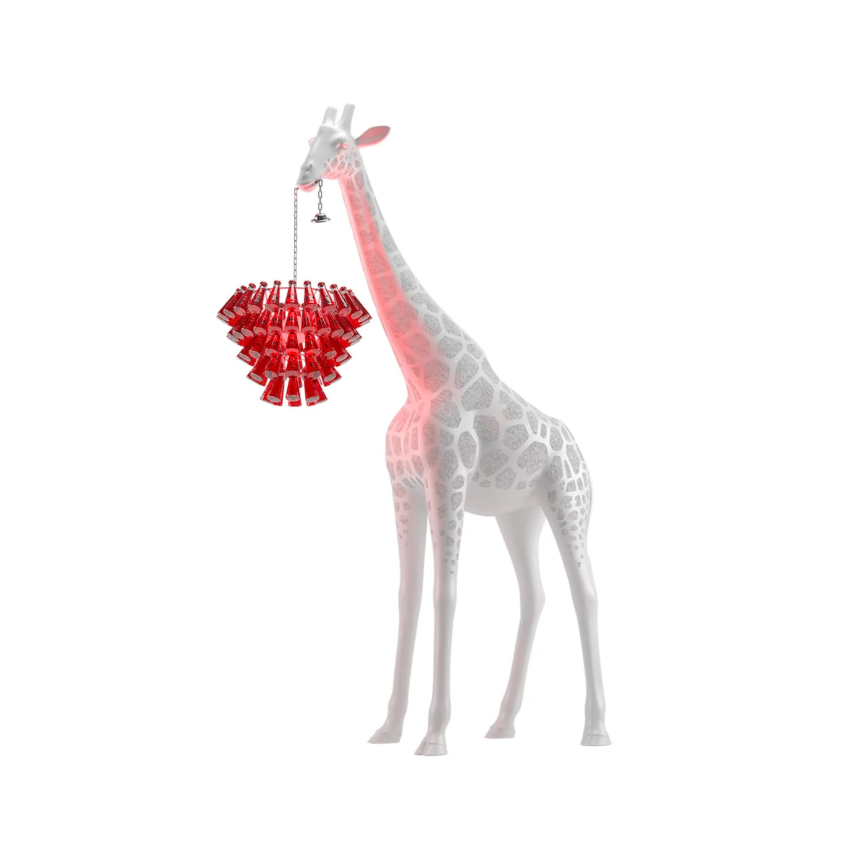 La Lampada Giraffe in Love M Campari di Qeeboo è una reinterpretazione esclusiva e sorprendente della celebre giraffa luminosa disegnata da Marcantonio.