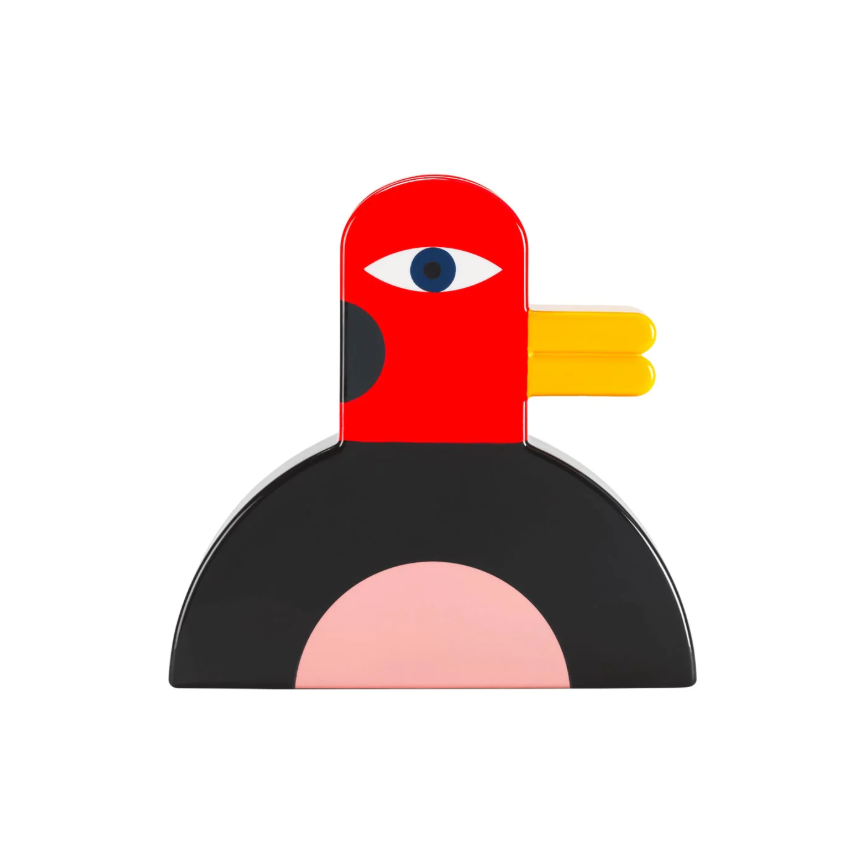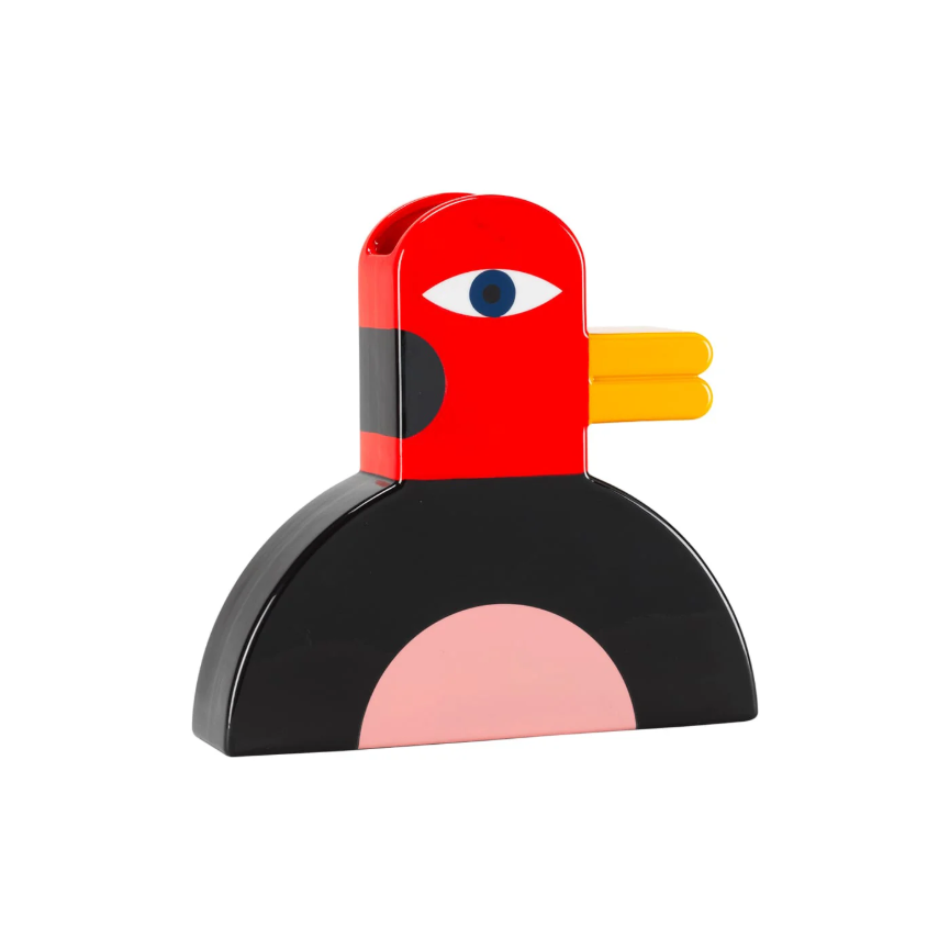 Il Vaso Giuggiolo di Qeeboo, firmato da Marco Oggian, fa parte di una collezione di sculture ceramiche caratterizzate da figure animali, umane o vegetali e da colori primari intensi. Insieme, questi oggetti danno vita a un vero e proprio paesaggio figurativo che racconta l’immaginario vivace e surreale del designer.
