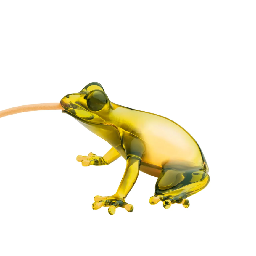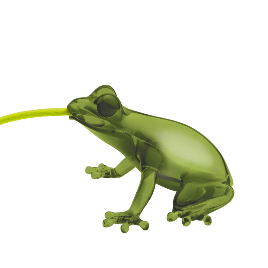 Il cavo rivestito in tessuto, lungo 180 cm e dotato di interruttore integrato, esce dalla bocca della rana, rendendo la lampada utilizzabile sia come lampada da tavolo che come applique da parete. Il suo design compatto e scultoreo la rende perfetta per comodini, scrivanie, mensole, ingressi e spazi creativi che desiderano un dettaglio di carattere.