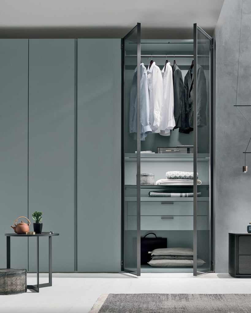 Progettato non per nascondere, ma per valorizzare e mettere in mostra ciò che custodisce, trasforma l’armadio in un vero e proprio elemento scenografico della stanza.