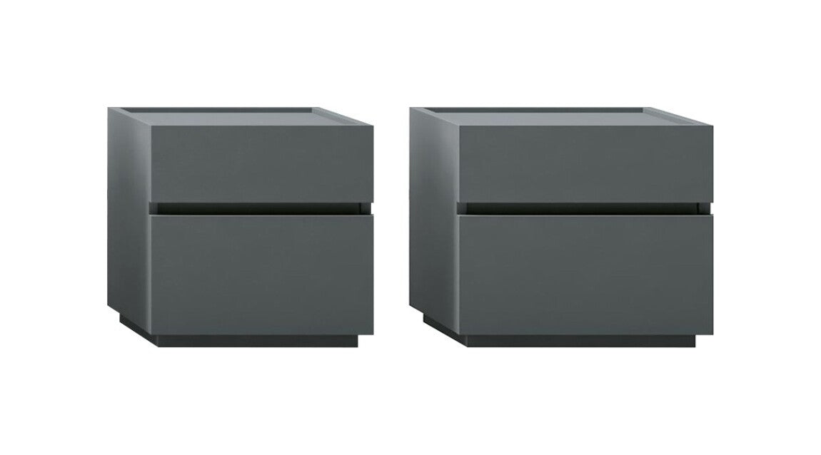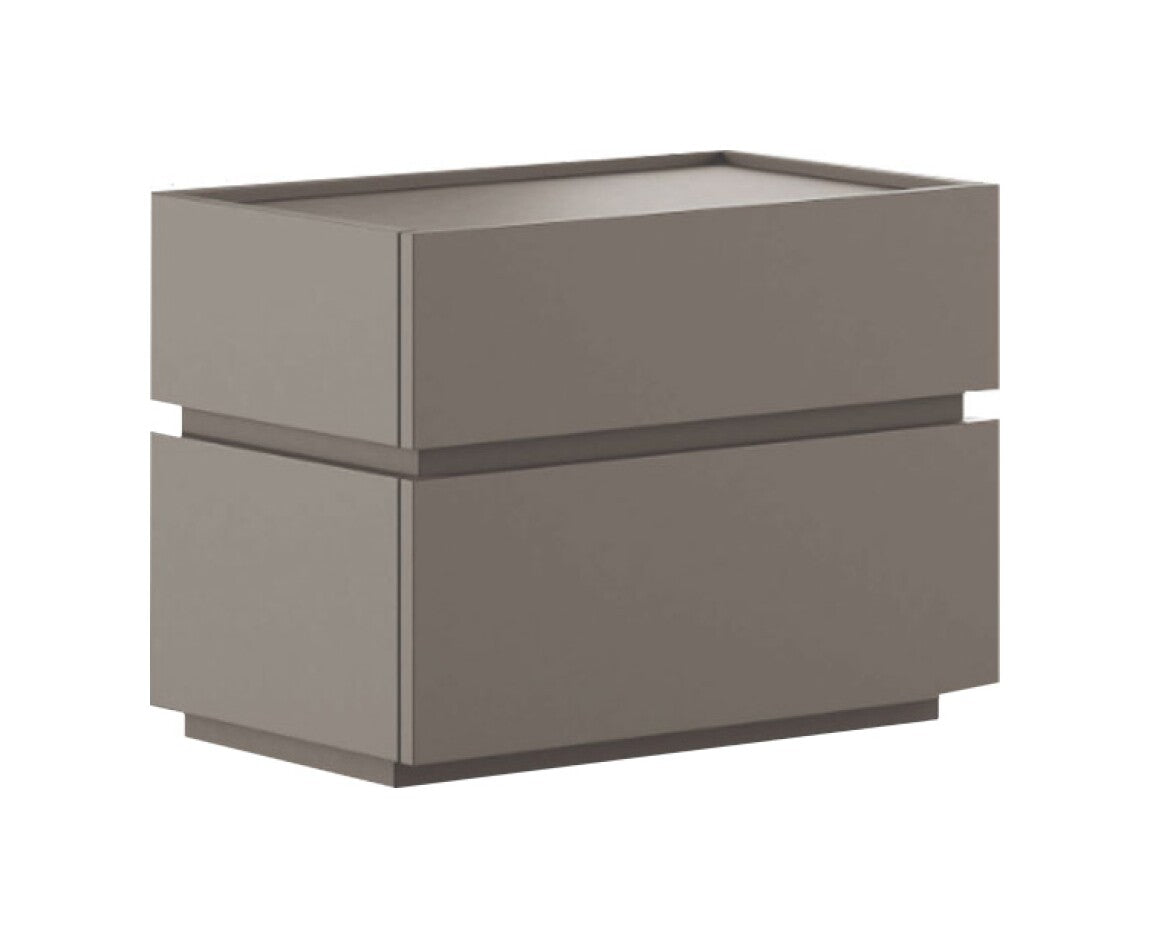 Comodino Replay fianco unito: modello a terra con 2 cassetti, disponibile in larghezza 44 o 60 cm, proposto con zoccolo o con elegante basamento in metacrilato trasparente.