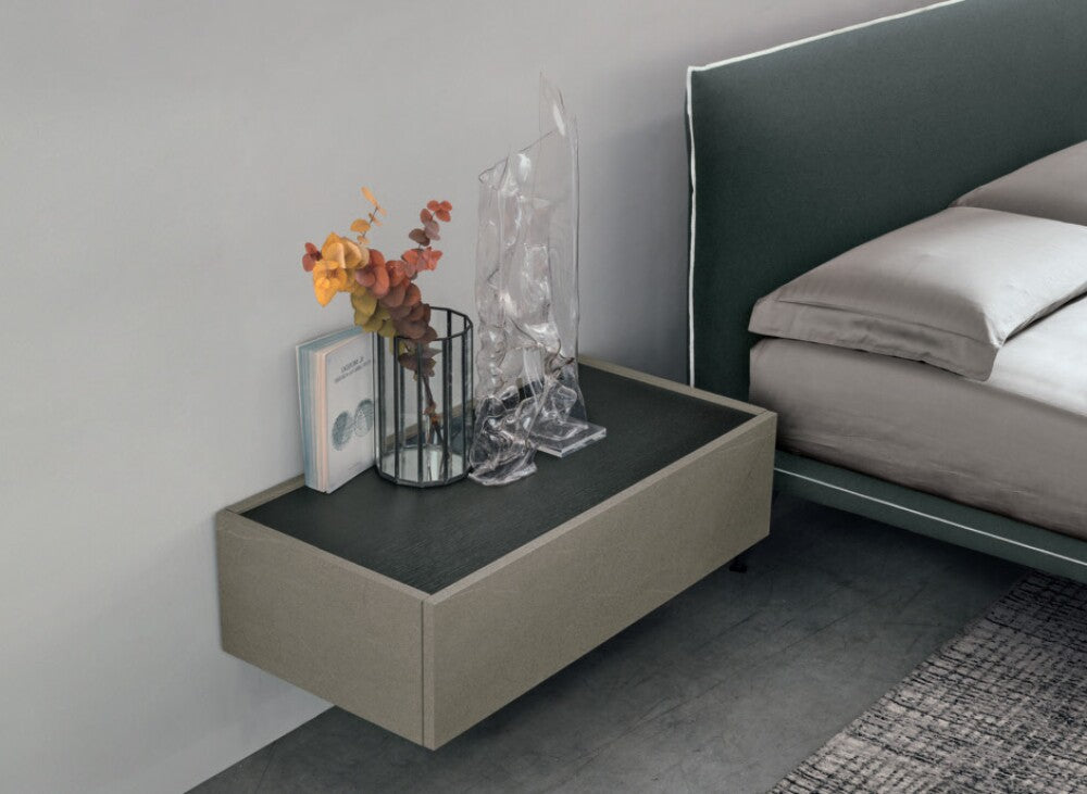 Comodino Replay sospeso: versione minimale con 1 cassetto, installabile a parete, disponibile in più dimensioni (da 44 a 120 cm di larghezza) e profondità (44 o 51 cm). Perfetto per chi desidera un look leggero e contemporaneo.