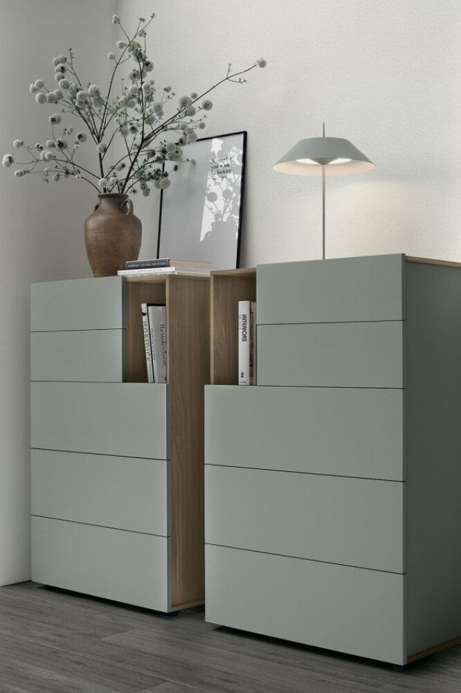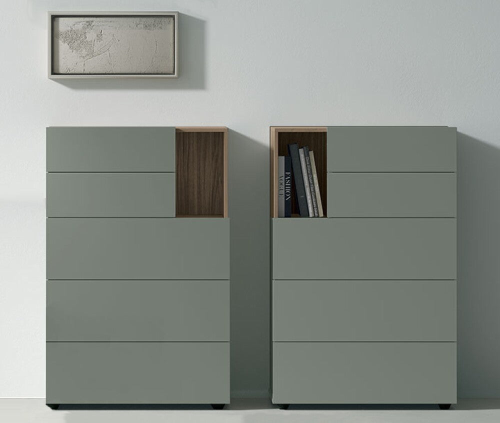 Disponibile nella versione destra o sinistra a seconda del lato in cui è collocato il vano a giorno, il settimanale Theo si adatta perfettamente a camere dallo stile contemporaneo, grazie alle linee pulite e rigorose e alle ampie possibilità di personalizzazione.