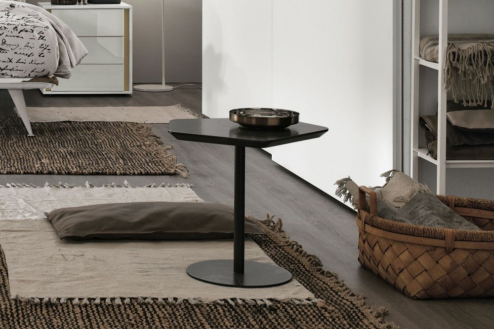 Il tavolino Caruso di Tomasella è un complemento di design moderno e multifunzionale, caratterizzato da una forma pentagonale irregolare che lo rende unico e riconoscibile.