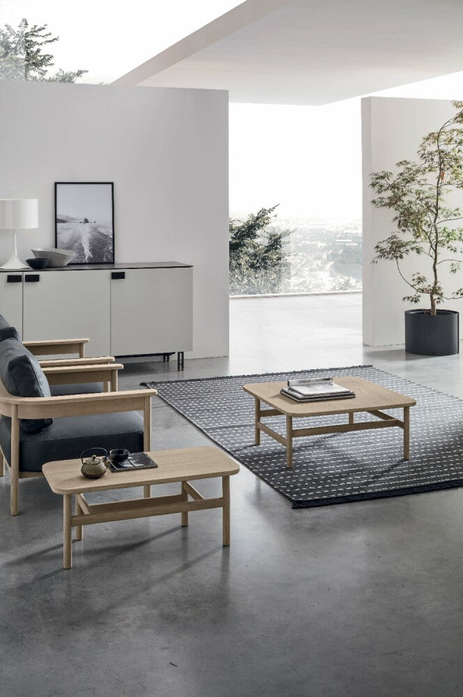 Disponibile in versione quadrata o rettangolare, questo tavolino si rivela perfetto come piano d’appoggio davanti al divano o accanto a una poltrona nella zona living, ma può essere utilizzato anche come base per libri, riviste o piccoli oggetti decorativi.