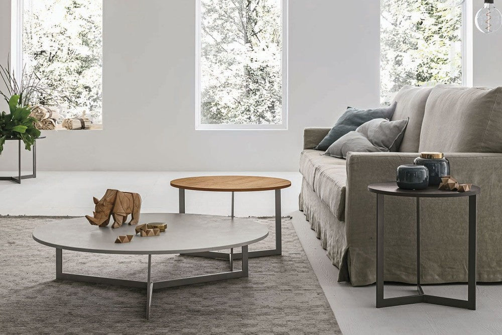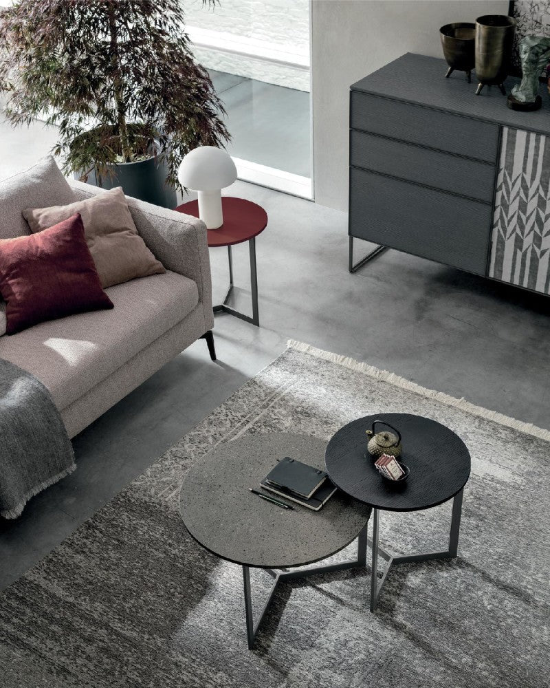 Joy Plus → con piano più spesso, pensato per un maggiore impatto visivo e ideale come tavolino d’accento in salotto o zona lettura.