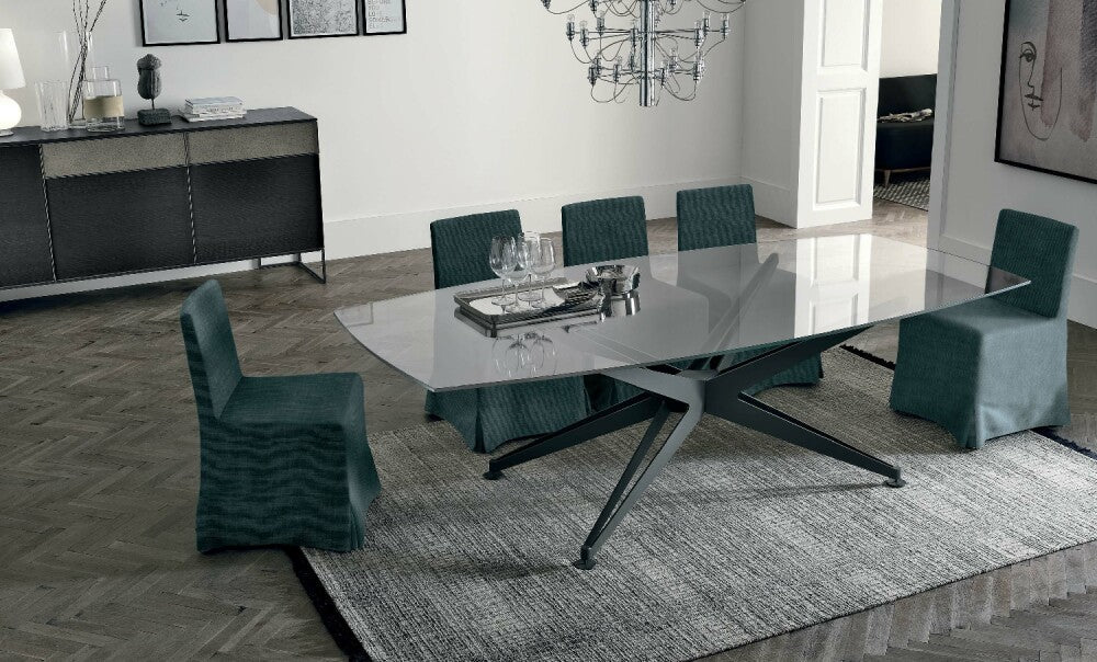 Il tavolo Halley è disponibile in versione fissa e allungabile: