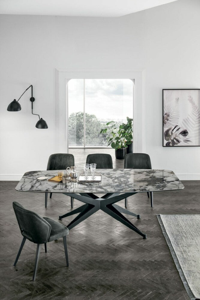 Halley di Tomasella è un tavolo dall’estetica contemporanea e sofisticata, che unisce solidità ed eleganza in un complemento d’arredo estremamente versatile, perfetto sia per la zona pranzo che per ambienti professionali come sale riunioni o uffici direzionali.